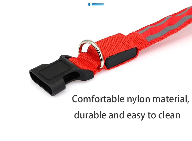 USB Rechargeable Dog Collar Light Luminous Flashing Glowing Bright Nylon Reflective LED Dog Collar Night Safety For Cats Puppy