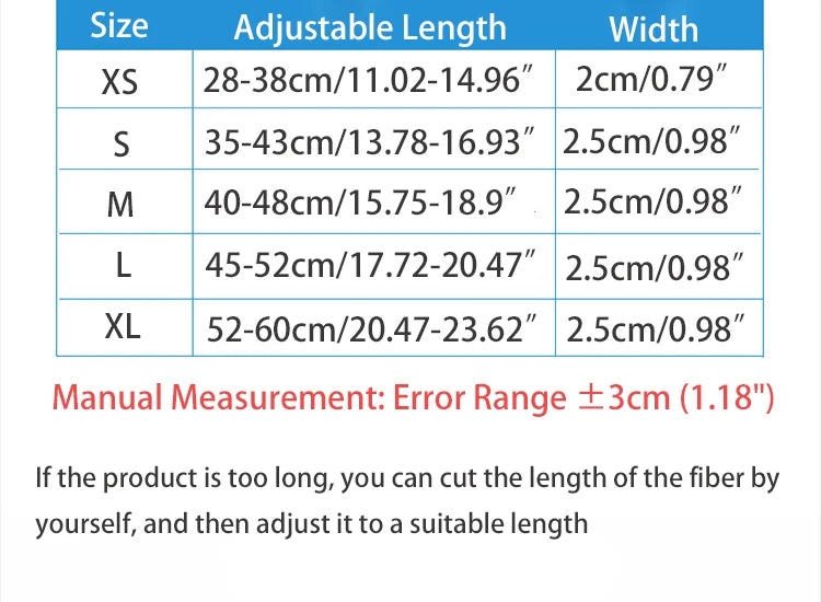 | XS | 28–38cm / 11.02–14.96” | 2cm / 0.79” |